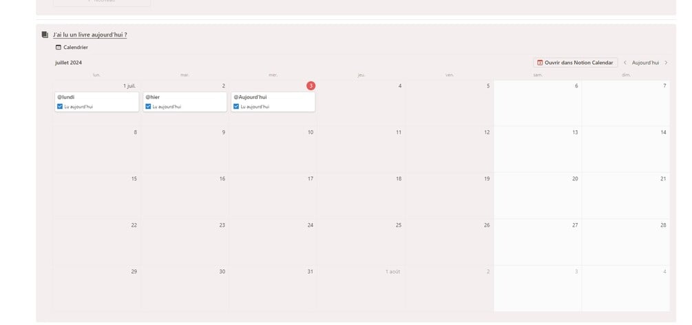 ◾ Chaque jour, cochez une case "J'ai lu" dans la vue en calendrier en bas du modèle. Cela vous permettra, à la fin de chaque mois, d'observer vos performances et la constance de vos habitudes de lectures.